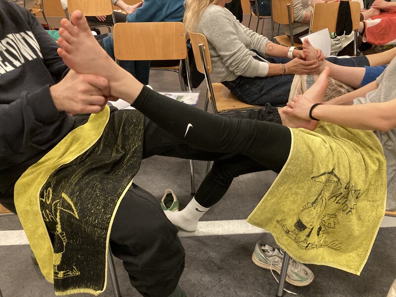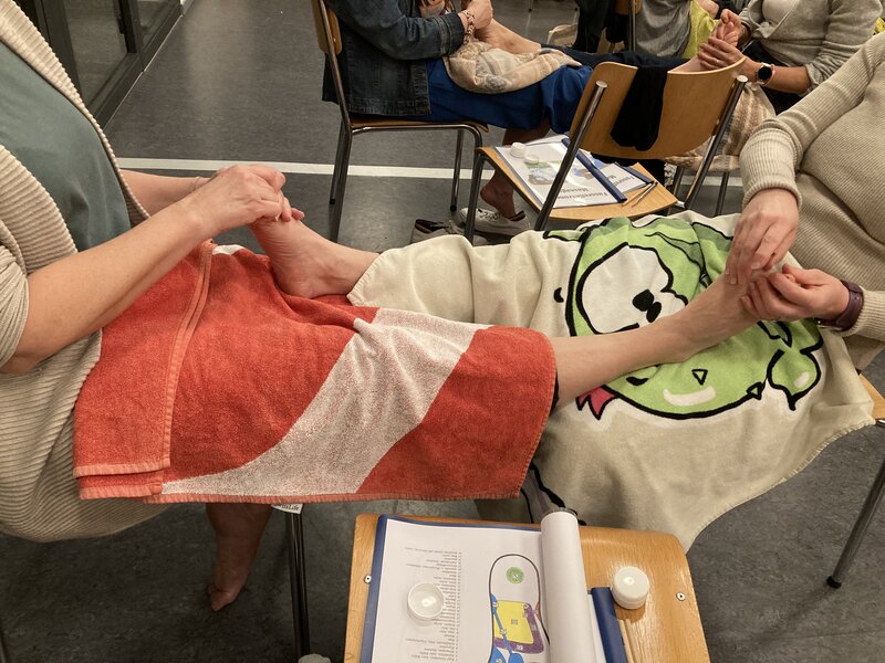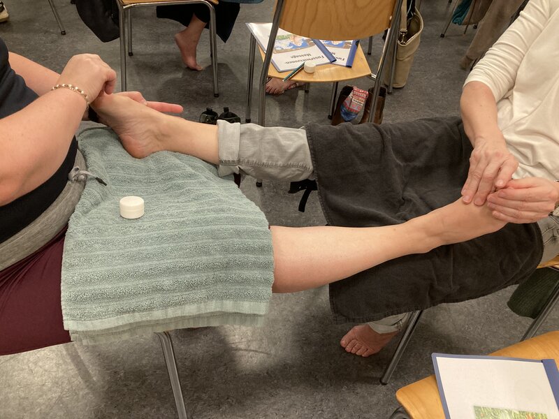 Margrit Wyrsch zeigte uns den Ablauf der Massage und wir konnten diese Anleitung sofort auch in die Praxis umsetzen. Einige Punkte fühlten sich speziell an, manchmal sogar schmerzhaft 😉