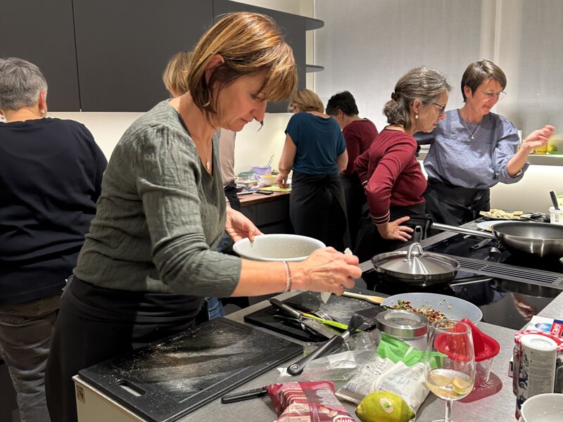 Am 6. November fand der Vegi-Kochkurs bei Dayana Zgraggen statt. Gemeinsam wurden acht vegetarische Menüs zubereitet. Nach dem Kochen wurden alle Speisen liebevoll als Buffet angerichtet, damit alle die feinen Köstlichkeiten probieren und genießen konnten. Beim gemeinsamen Essen fand der Abend in gemütlicher Runde seinen genussvollen Abschluss.